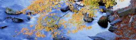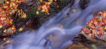 渓の流れに散り浮く紅葉