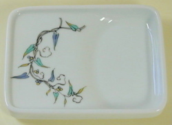 減塩味わい皿(角大) 皿は硯(すずり)のような構造になっています。食材に絡めた醤油やタレ、オイルなどを、凹みや傾斜の活用で、余分な量をきったり、量を適度に調整したりすることができます。浸けすぎにならず、減塩効果を発揮します。塩分を気にする方など特に重宝すると思います。 寿司・刺身・焼肉・ぎょうざ・しゅうまい・お漬物・オリーブオイルやドレッシングなどの浸け皿にお使い頂けます。また、お漬物や珍味などの取皿として、お通しの皿としても大変便利です。重なりもよく収納も便利。丈夫なつくりになっております。 白磁の皿には繊細で美しい絵柄。眺めていて楽しくなります。15絵柄を取りそろえました。 |