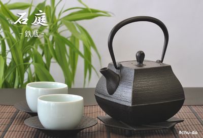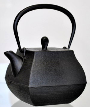壱鋳堂の鉄瓶・・・石庭 一般的に鉄瓶は、角(カド)のない、円筒形、球形の形状が多くを占めます。それは、鋳型を作る場合、角があるとその制作が大変難しいためです。また鉄瓶は上下、または左右の型を合わせて制作しますが、角型は、円形に比べ結合がやはり難しくなります。この鉄瓶はそんな困難、制約を乗り越え制作されました。優れたデザインと高度な技術が融合した傑作、ハイレベルの鉄瓶の誕生です。 この鉄瓶の誕生にあたっては、最初に卓越したデザインがあります。しかし、そのデザインは美しさ・機能だけではなく、それを実行レベルまで推し進めていく豊富な現場感覚が内包されていなくてはいけません。そして金型屋さん、鋳造職人さんがそれを受け継ぎ、高い技術をして、鉄瓶は完成されていきます。デザイナー、職人さんの共同作業の賜です。 |