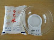 | もち米を量ります。 | もち米を水に浸します。 タイマーで浸す時間を計っています。 |