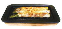 | 本体(皿)の外径は、「31×15×H2cm」です。 もしお持ちの (1)「魚焼グリル」、また(2)「オーブントースター」に鉄の皿を入れることができれば(庫内のスペースがあれば)、(1)、(2)でお使いいただけます。 ダンボールなどを上記のサイズで切り取り、入れてみると分かります。 左画像の木台はここに展示のものとは違います。 |