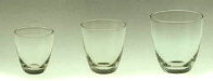 廃棄された蛍光管を完全無害化。そのリサイクル処理された再生ガラスで作られたグラスです。手作りゆえ、ひとつひとつみな個性があり、表情が違います。 グラスは薄い緑色をしていますが、これは再生ガラスのそのものの色合いを活かして、脱色剤など使わず、また特別な色づけを行っていないためです。またグラスの中には、細かな気泡が見られますが、これも気泡を消すための化学処理(清澄剤)を行わないで、そのままにしました。気泡が模様の一部のように感じられます。環境問題の取り組みとともに、再生ガラスを伝統工芸と結び合わせ、素材の味わいを引きだした製品に、新しい時代の流れを見ます。 e-glassの「Dew」は毛利夏絵氏のデザインによるもので、ガラスというシャープな素材にやわらかな風合いを加味させたやさしい面もちのグラスになっています。東京都知事賞を授与された作品です。「Maru」は松徳硝子のうすはりのデザインを取り入れ、e-glassの持ち味と良く調和しています。シンプルな形状が魅力です。 |