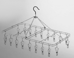 ステンレスハンガーLL ひとまわり大きめなサイズです。ピンチが28ヶになります。 サイズ:79×41×H44cm 材質:18-8ステンレス 内容:ピンチ28ヶ |