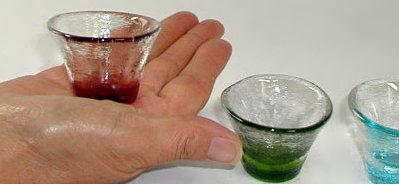 硝子の小付3ヶ。 色は、浅紫、若草、若水。 |